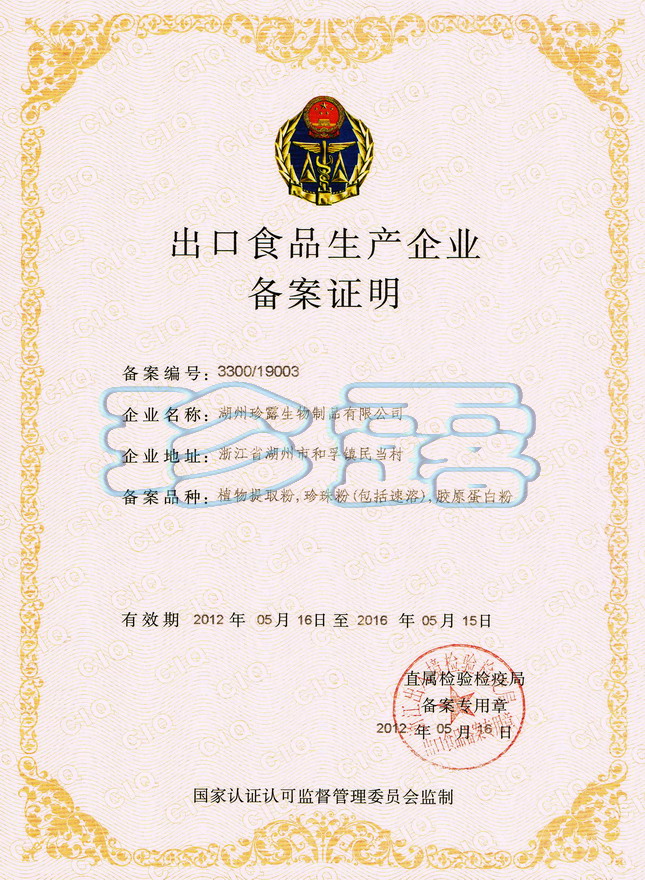 出口食品生產(chǎn)企業(yè)備案證明